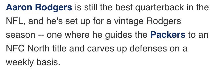 But why is Arod the best qb in the league? Cam was MVP, Brady and Brees are stil playing. What gives?