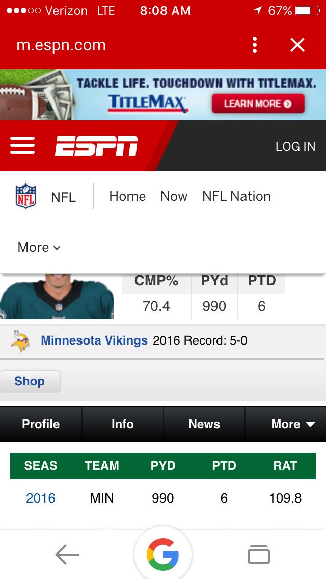 Bradford is having a better season then Matt Ryan so far the fuck.