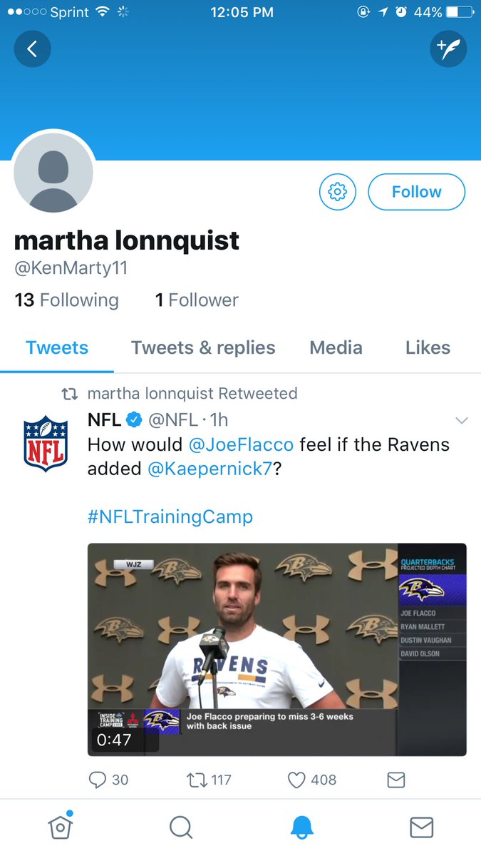 #49ers Fan But I gotta give Respect to Joe Flacco he sees the good in Kaepernick He really deserves a shotThanks. Twitter will use this to make your timeline better. UndoUndo