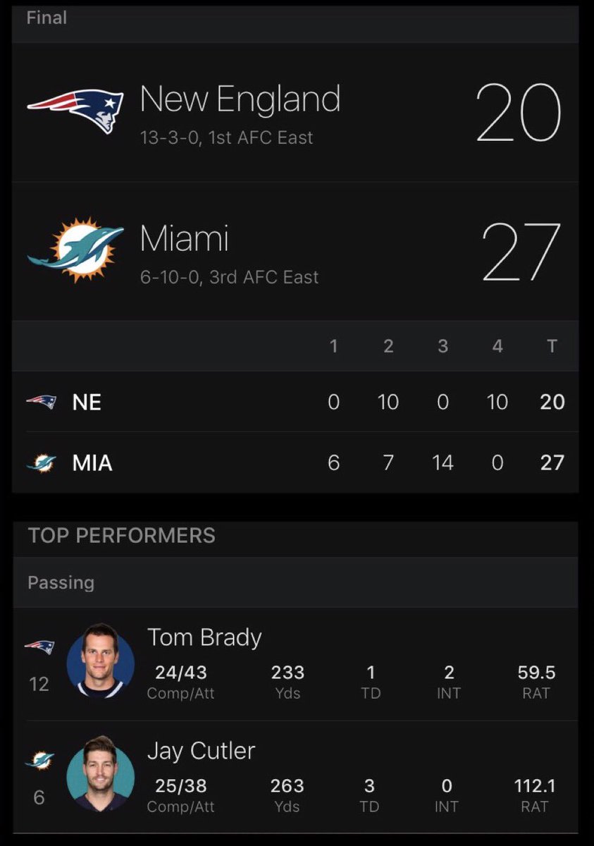 You're only here because the afc is trash. Remember you played brissett, bortles, and Savage twice... That's half your wins lol... This is gonn be like what happened that snow game a few years ago.. I think it was 107-0 at half