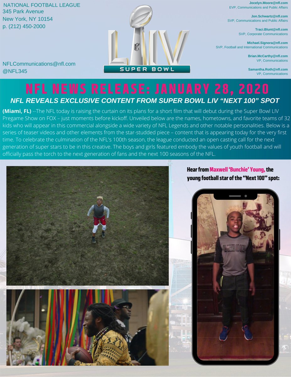 @NFL REVEALS EXCLUSIVE CONTENT FROM SUPER BOWL LIV “NEXT 100” SPOT