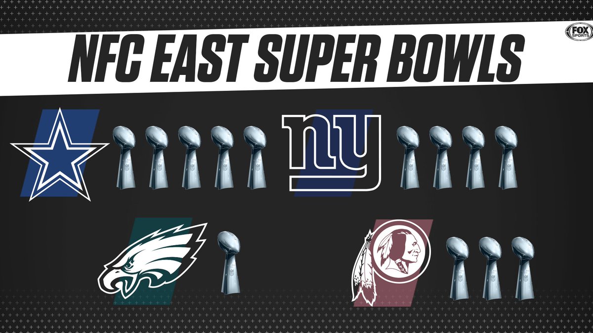 The NFC East has the most Super Bowls by division with 13. It’s also the only division where every team has at least 1 Lombardi Trophy. Will the Cowboys or Eagles add to their total this season?pic.twitter.com/Uuwo6I8Opm