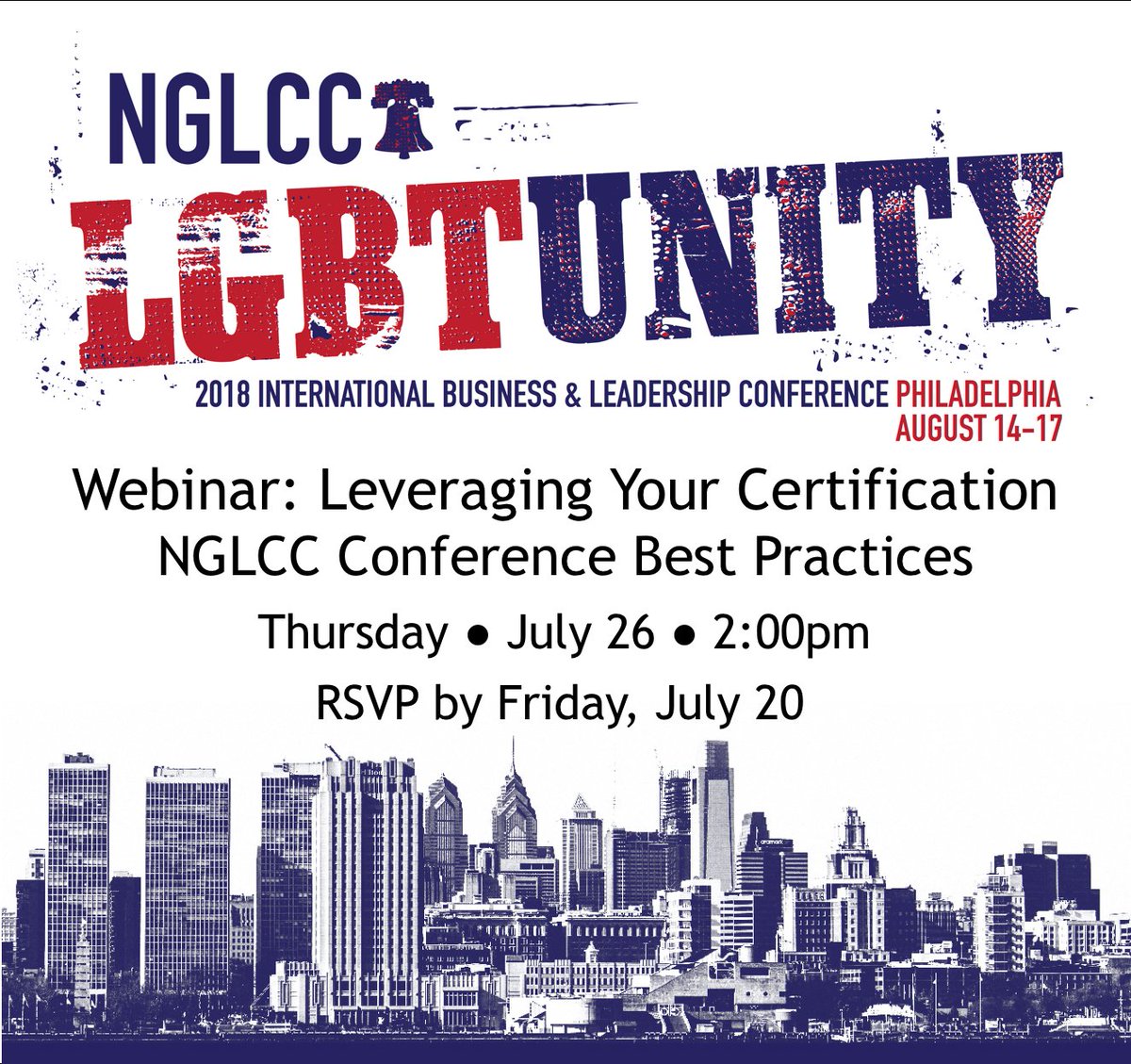 Don’t forget to sign up for our July 26 webinar, Leveraging Your Certification: NGLCC Conference Best Practices! Click here to RSVP: http://ow.ly/aNHB50hZYqt pic.twitter.com/T0xo82mpwt