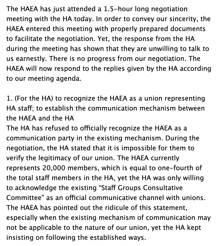At 11:28 last night, HAEA, the union, issued a statement on its meeting w HA, emphasizing disappointment w HA's lack of preparedness, refusal to recognize the union as a negotiating party & refusal to promise not to retaliate against striking workers. http://t.me/ha_employalliance/404 …pic.twitter.com/xlsgPvbX8F