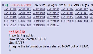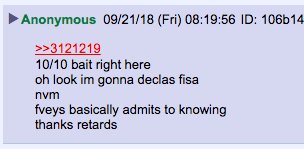 Trump tweeted that he is delaying declas of FISA docs pending review. That runs counter to the QAnon narrative. Q ran damage control in three drops. Q basically says (as one anon summarizes) that Tump is tricking our Five Eyes allies into exposing what they know about the docs.pic.twitter.com/SFBimK5sq0