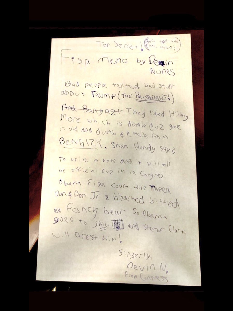 Re: comments/questions: -"What are you afraid of? Why not release the memo?" Nothing. Fine by me. A Congressman's memo doesn't prove/disprove anything. It's his take, not a primary source. And that's true of a Congressman with credibility--Nunes' squandered his a while ago.