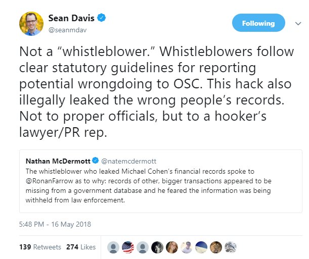 -GET OUT THERE AND DEFEND MICHAEL COHEN! -Sir, this stuff's really bad. Money laundering, fraud, looks like bribery. -Don't care. Yes, Sean? -Um... how about a semantic argument over what counts as whistleblowing? -Ugh. Anyone have a better idea? No? OK, Sean, that'll have to do.pic.twitter.com/d3UYq9pk0i