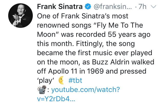 A little history today (6/13/2019), Frank Sinatra’s song “ Fly me to the moon “ https://www.youtube.com/watch?v=Y2rDb4Ur2dw …pic.twitter.com/rngOO4Ahcn