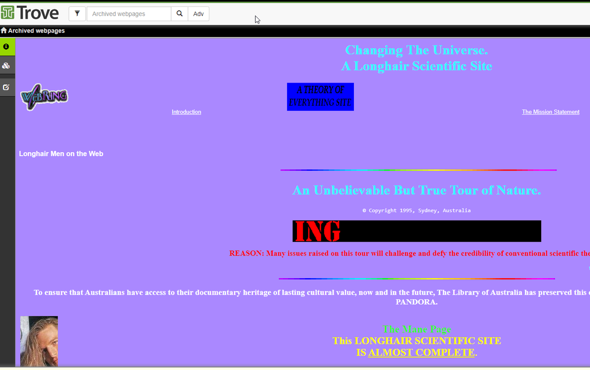 #WebArchiveWednesday#longhair#theoryofeverything https://webarchive.nla.gov.au/awa/20000919130000/http://web.one.net.au/_longhair1/index.html …pic.twitter.com/4DL5TtQa4g
