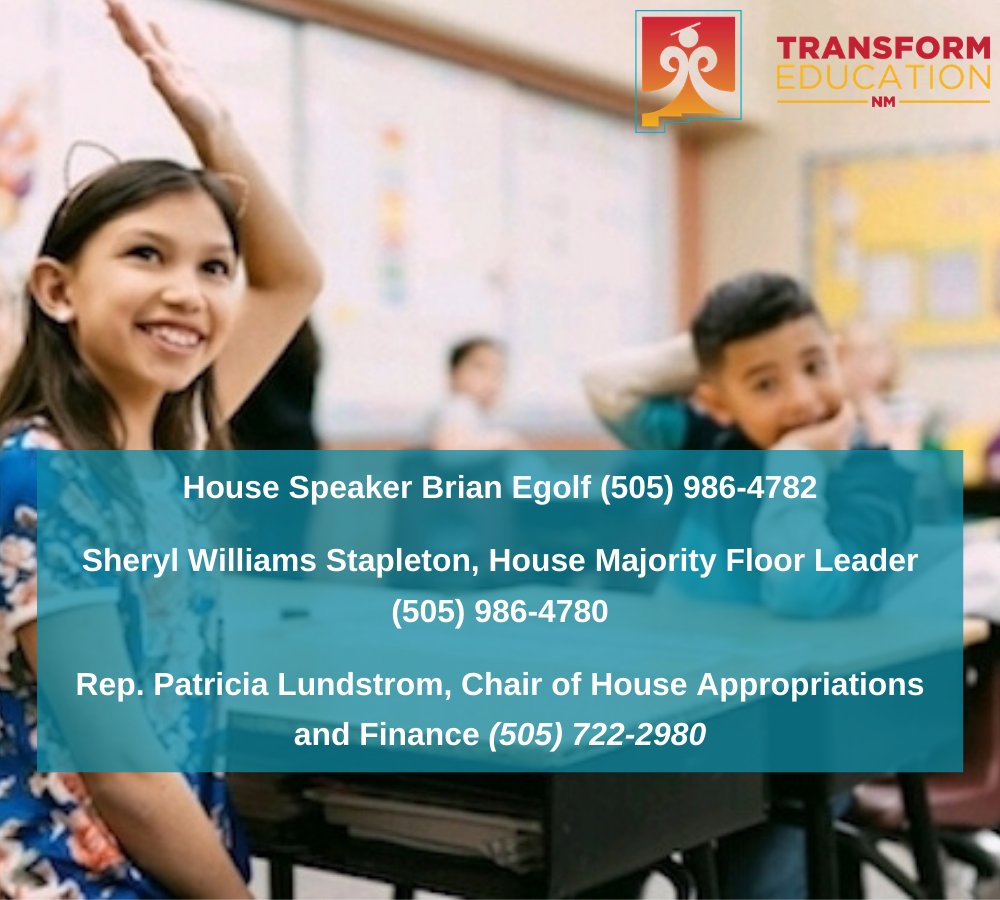 #NM students deserve equitable opportunities to be successful. Please join us in calling these legislators to urge them to ensure important education legislation is included & fully funded in House Bill 2. Call today! https://transformeducationnm.org/2020/01/31/urgent-action-alert-urge-legislators-to-include-important-education-legislation-in-house-bill-2/ …#nmleg#nmpol#TransformEducationpic.twitter.com/WdVlJDxmif