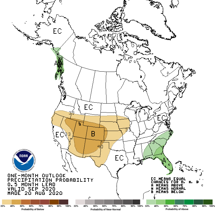 Our initial forecast for September 2020 anticipates increased chances for continued warmth and dryness across much of the West. https://www.cpc.ncep.noaa.gov/products/predictions/long_range/lead14/ …pic.twitter.com/c2v2FxPInz