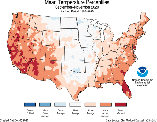 #November 2020 avg temperature was 46.4°F, 4.7°F above avg -- making it the 4th-warmest November on record, per@NOAANCEIclimate https://bit.ly/39TOotS#StateOfClimatepic.twitter.com/zILSoikHcF