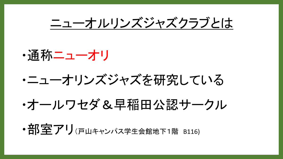 早稲田大学ニューオルリンズジャズクラブでは、新しい仲間を募集中です
