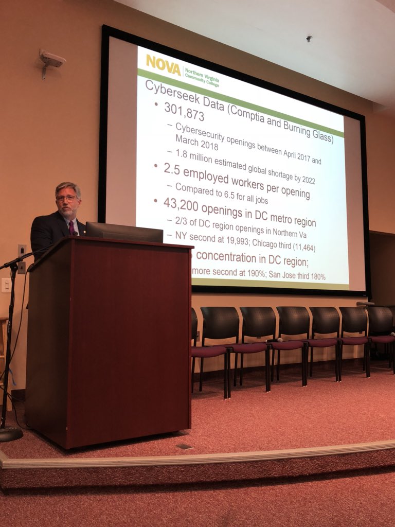 @NOVA_Prez of@NOVAcommcollege outlining the challenges facing the region in filling#cybersecurity jobs in the region.#VACyber College taking proactive steps in the region.pic.twitter.com/fFcF1DC5qK