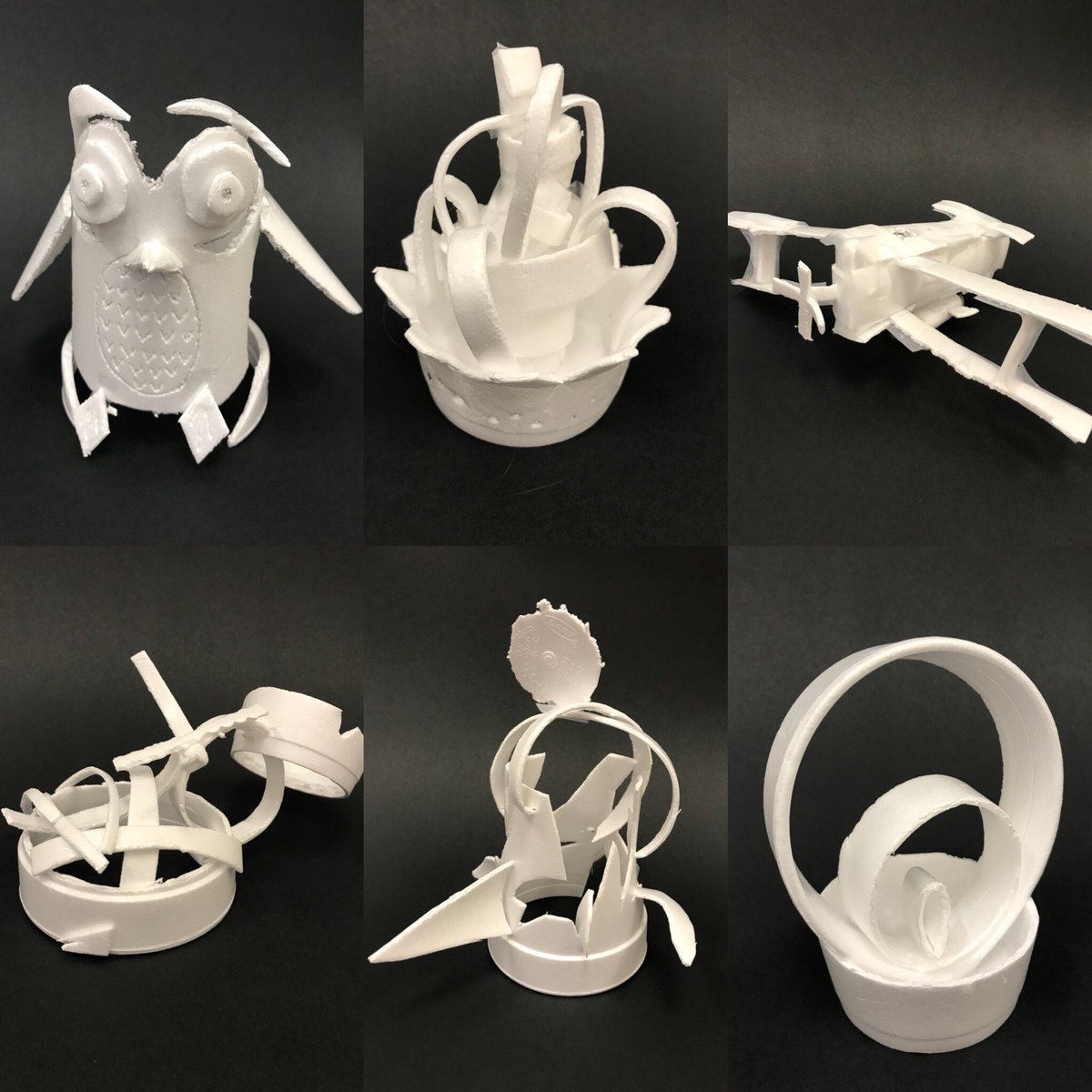 Styrofoam cup sculpture challenge....our students are so creative!pic.twitter.com/n20Lix47Lg