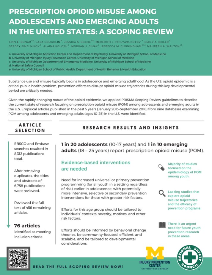 @NSCsafety, a new scoping review from@erinbphd@JrocheRoche@StrohCunningham & Maureen Walton found that 1 in 20 adolescents (10-17 years) & 1 in 10 emerging adults (18-25 years) report prescription opioid misuse https://www.prnewswire.com/news-releases/new-research-review-on-youth-prescription-opioid-misuse-finds-important-opportunities-for-additional-investment-in-targeted-prevention-work-300997787.html?tc=eml_cleartime …pic.twitter.com/D9BjkAXkEJ