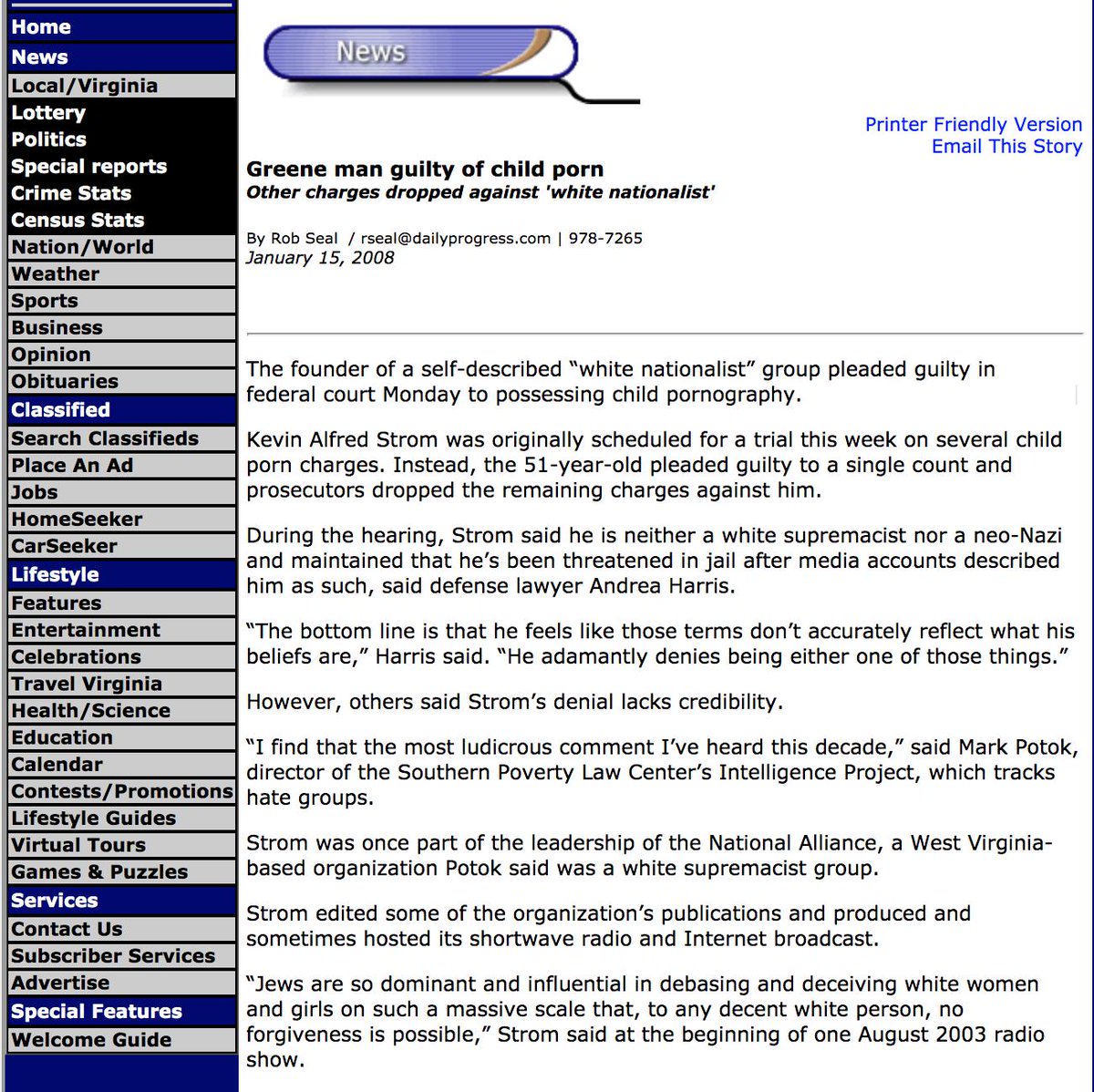 I don't need to speculate that you are a pedophile because you were convicted of possession of child pornography. I don't need to speculate about your racism and antisemitism because I've read your site/Twitter feed. (Great supporters,