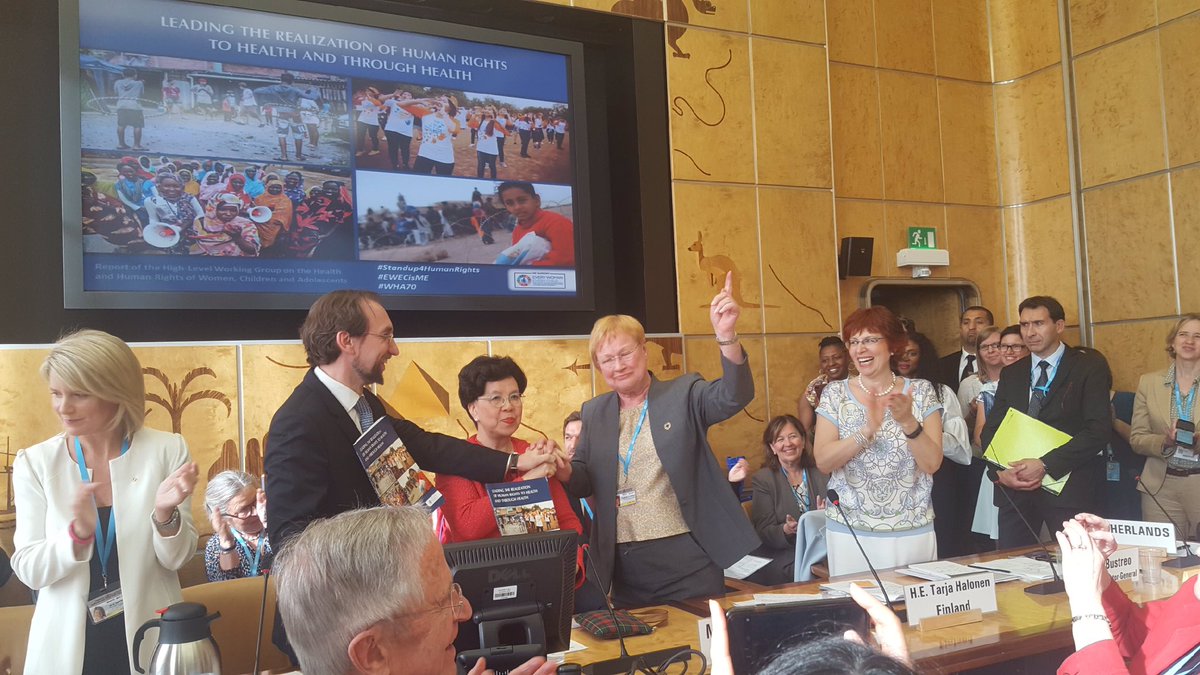@TarjaHalonen hands over Report to@WHO DG &@UNHumanRights High Commissioner.#WHA70#EWECisME#Standup4HumanRightspic.twitter.com/YrkUnaPUJO