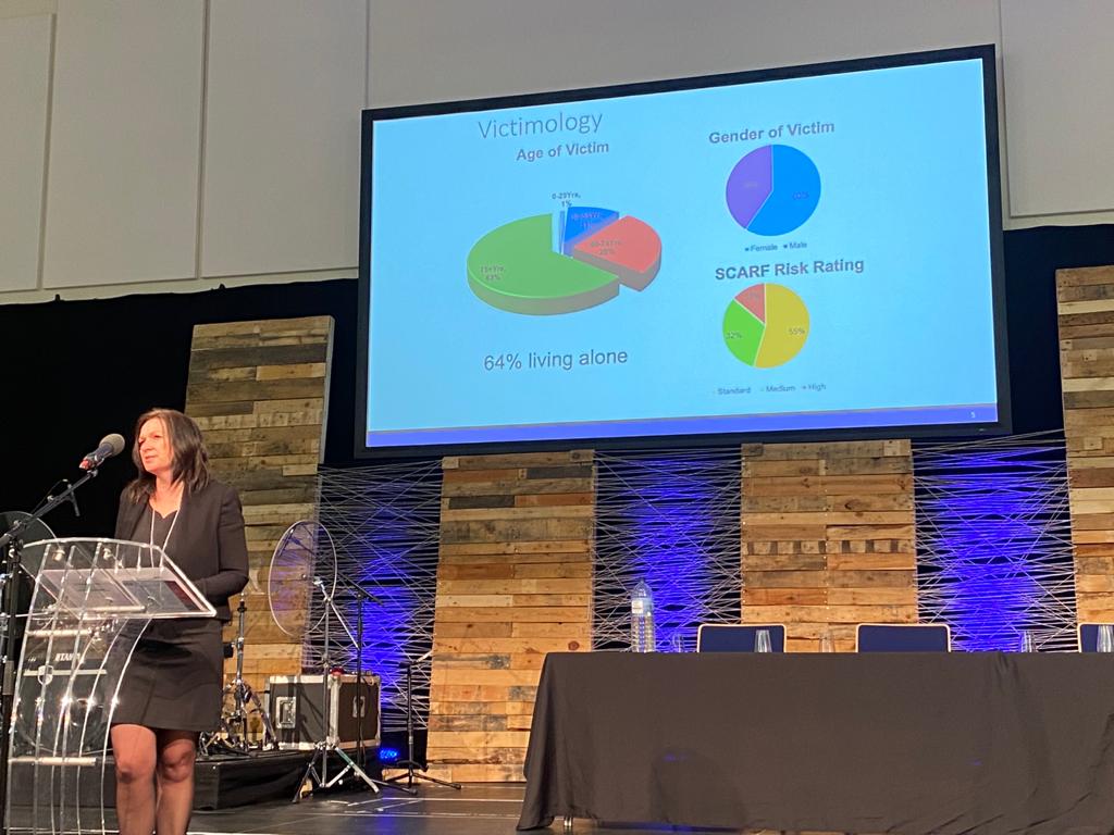 Bernadette Laurie from Surrey & Sussex police speaking at the 'Scams: The true cost. Working together to tackle financial abuse' conference today.