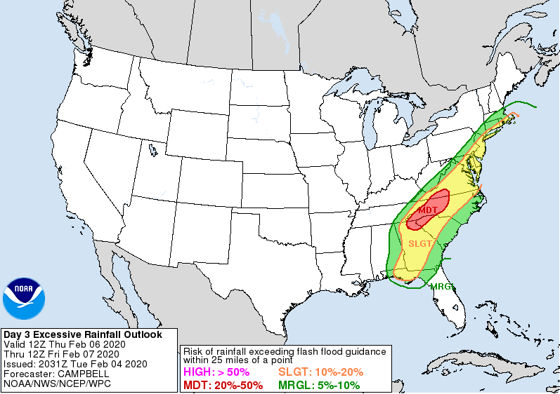 With multiple days of rain ahead of heavy rainfall Thursday with the front, the WPC has placed a majority of our area under a slight risk of exceeding flash flood guidance. Parts of the southern Blue Ridge and NC are in a moderate. Rain totals by Friday could reach +4".pic.twitter.com/1OGvMTawrn