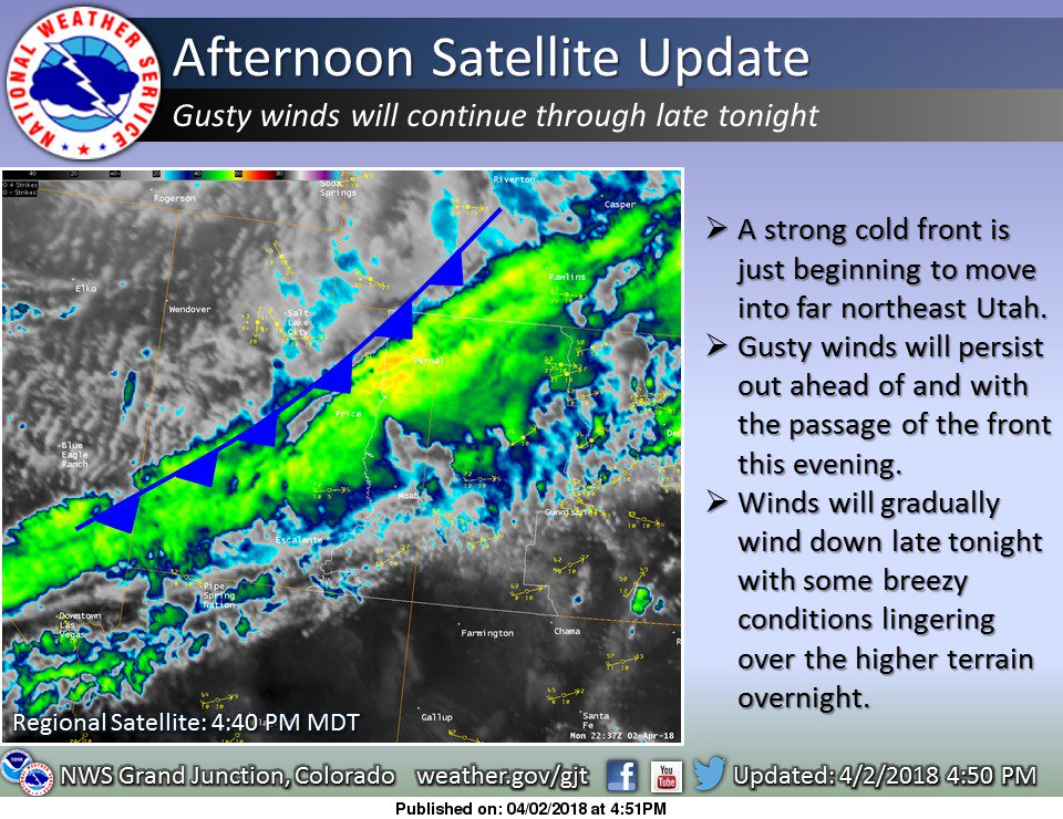 [4:48 PM MDT] The cold front is just beginning to enter our forecast area in far northeast Utah late this afternoon with breezy conditions.pic.twitter.com/GQxm4SVfEi