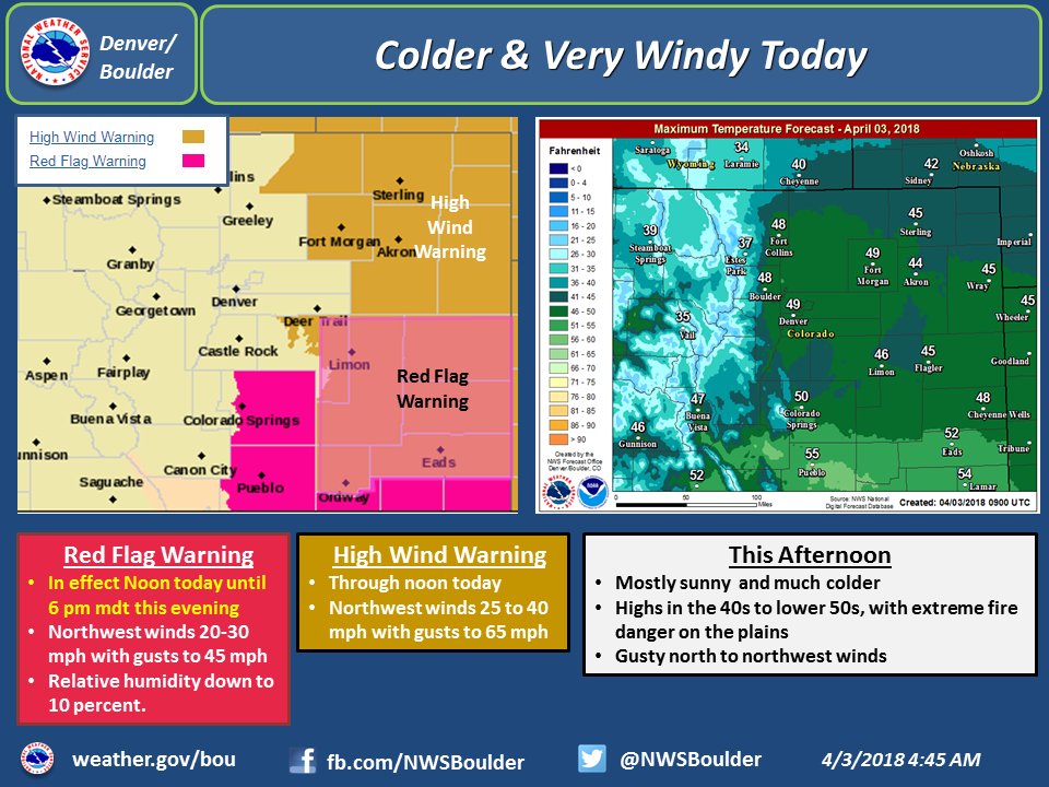 Windy & colder today. Elevated fire danger over the eastern plains this afternoon.