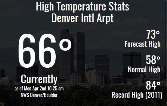 DIA's temperature increased 32° in 2 hours and 45 minutes today. (34°->66°) Through the rest of the afternoon it will become breezier with pleasant temperatures.