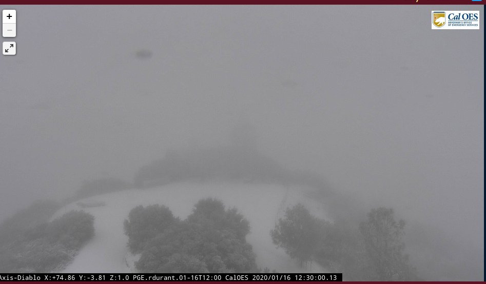 Cam shows accumulating snow on Mt Diablo early this afternoon. Latest shot: http://www.alertwildfire.org/northbay/index.html?camera=Axis-Diablo … via