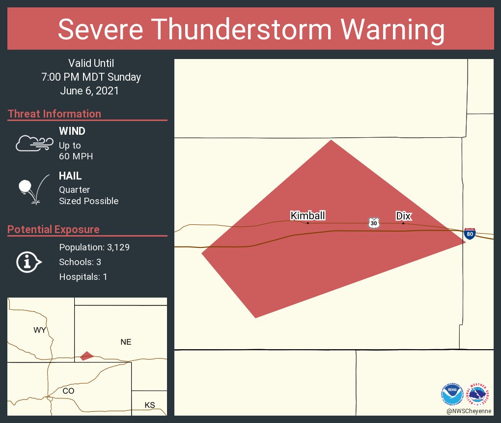 Severe Thunderstorm Warning including Kimball NE, Dix NE until 7:00 PM MDTpic.twitter.com/Jxea6pxLEJ