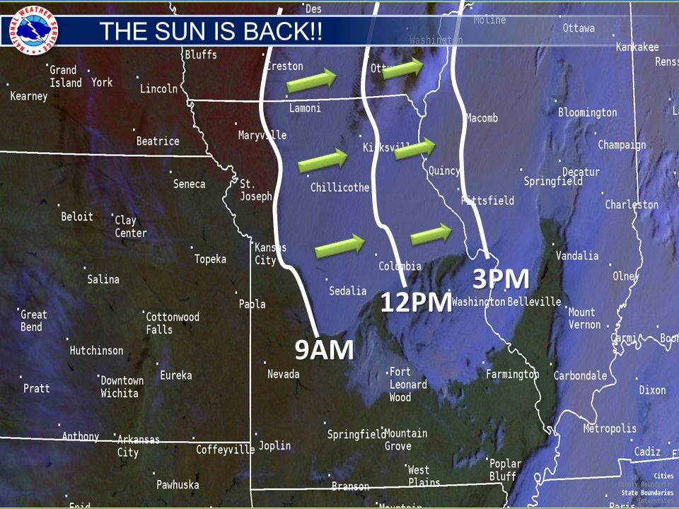 Alas, colder air moves in sinking temps well below freezing. Do not be surprised if you see some drizzle & flurries overnight, especially across far northern and central MO. Gusty winds bring sub-zero wind chills Sun AM & again after sunset.