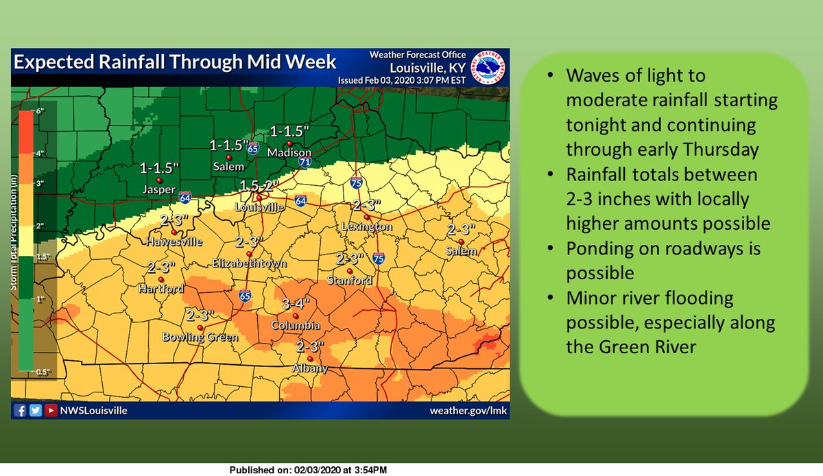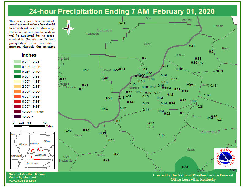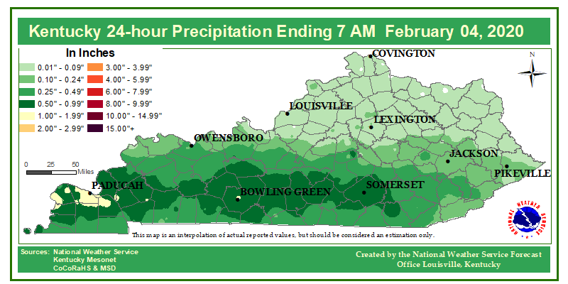 Measurable rain fell over all of southern Indiana and central Kentucky. Heaviest rains were along the Cumberland Parkway and south of the Bluegrass Parkway.