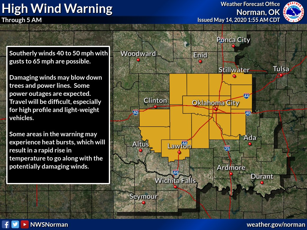 Damaging winds may blow down trees and power lines, and make travel difficult. #okwxpic.twitter.com/3JR2xZ08wS