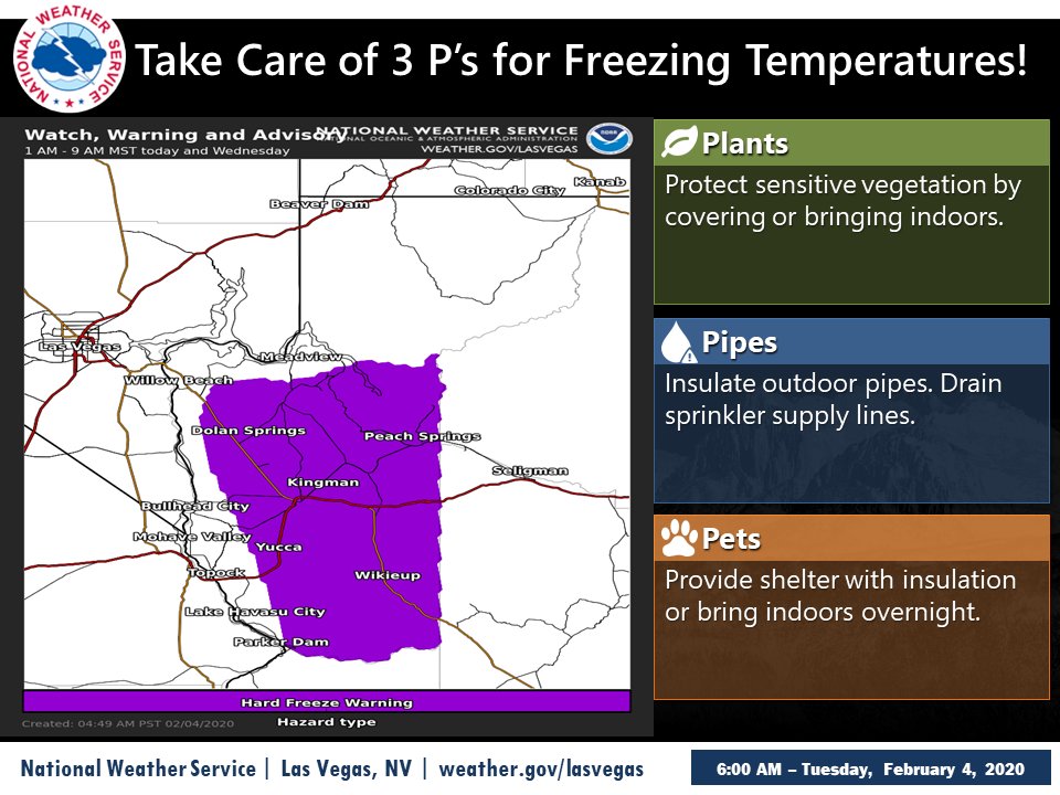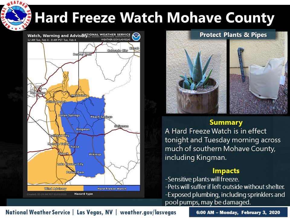 Heads up Mohave County folks! When this wind settles down, it's going to get COLD! Hard Freeze Watch in effect tonight. Protect pipes, plants, and pets!