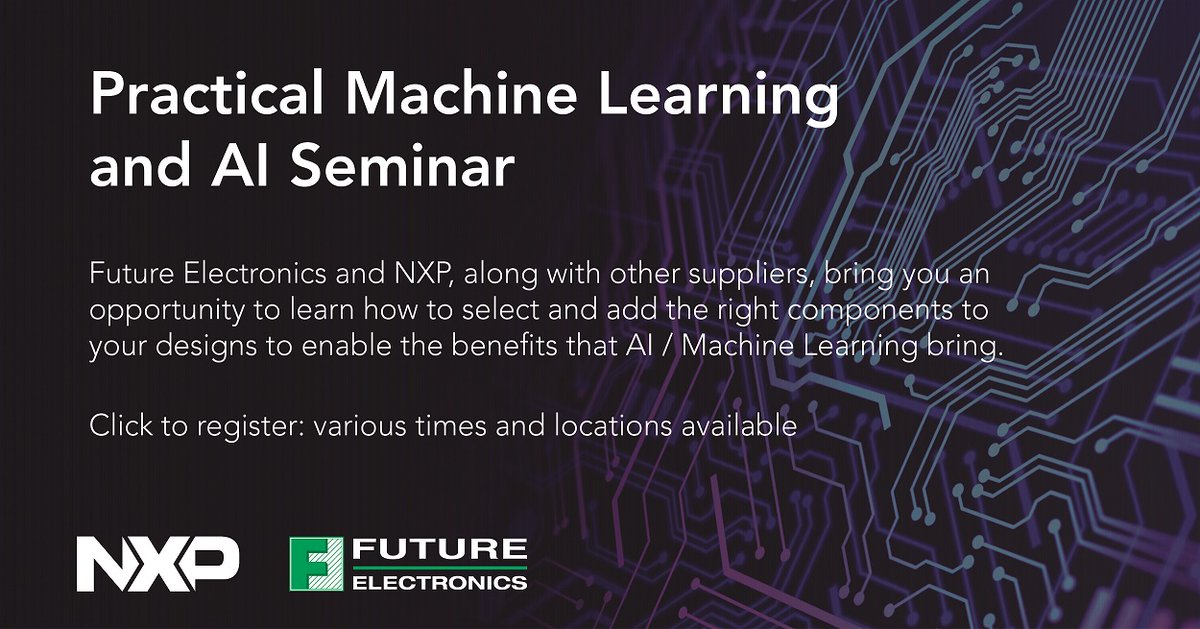 Join our seminars on how to access all benefits that #machinelearning brings! Hosted by #FutureElectronics, we're joining other suppliers to provide you with information to make the right design choices for your microcontrollers and microprocessors. http://ow.ly/BRuU50y9gAb pic.twitter.com/WpD9jc0WF5