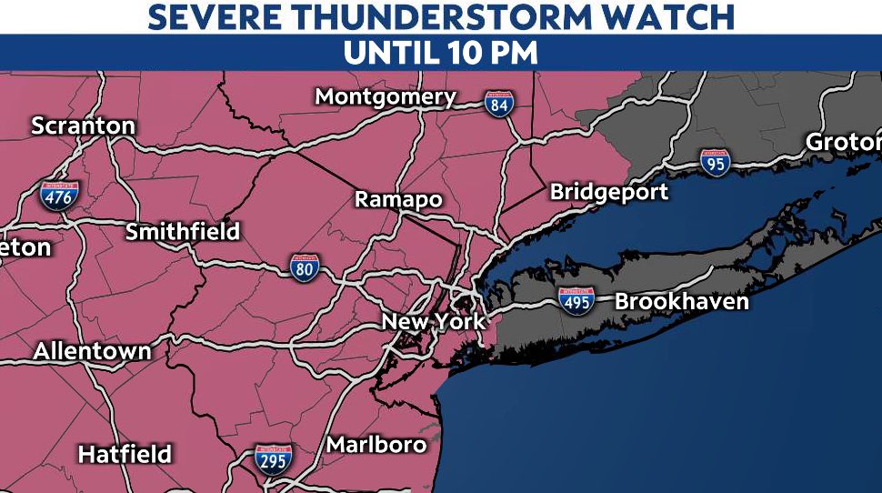 A Severe Thunderstorm Watch is in effect for parts of the NYC metro until 10 p.m.http://specne.ws/1APPpv