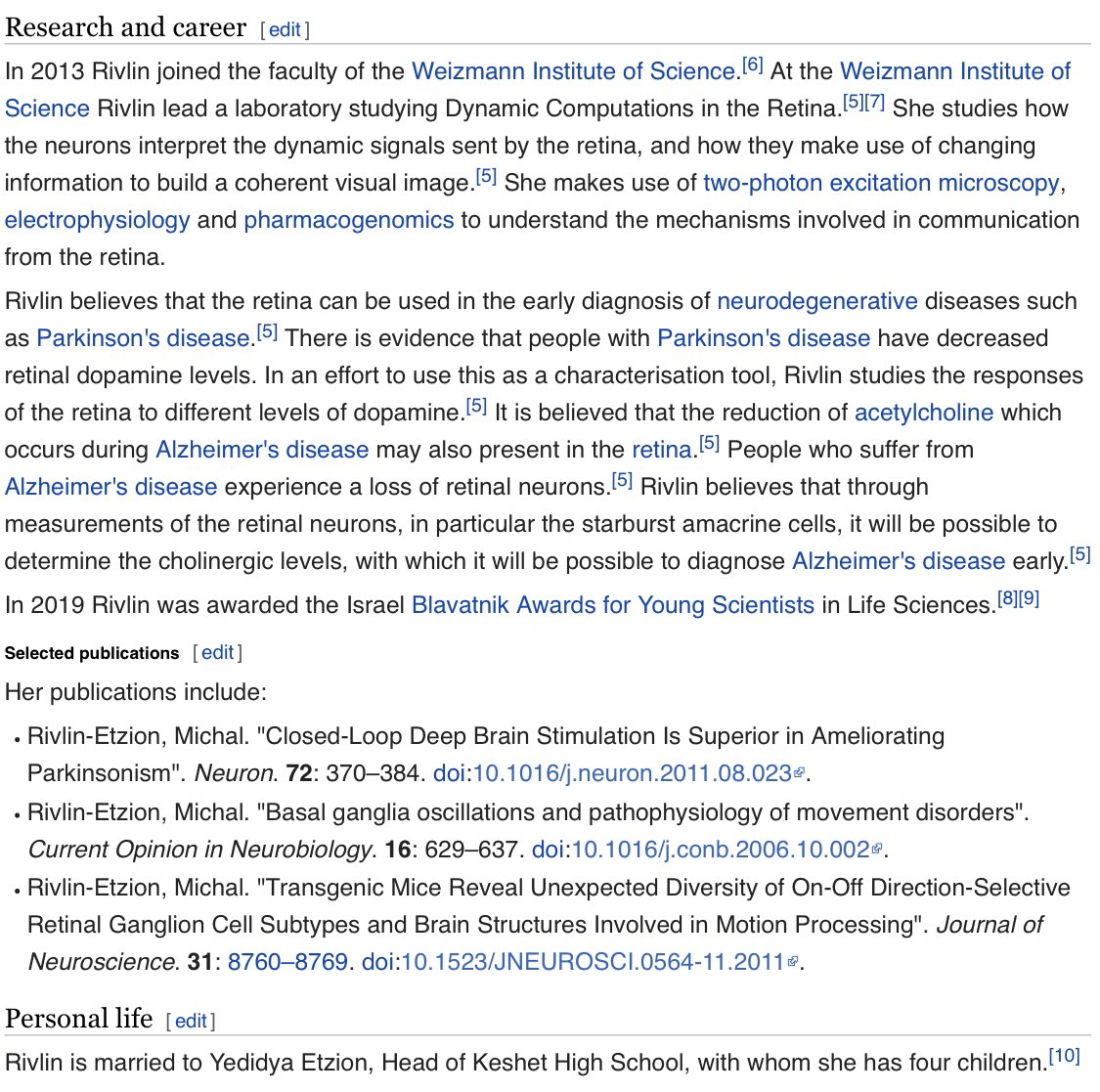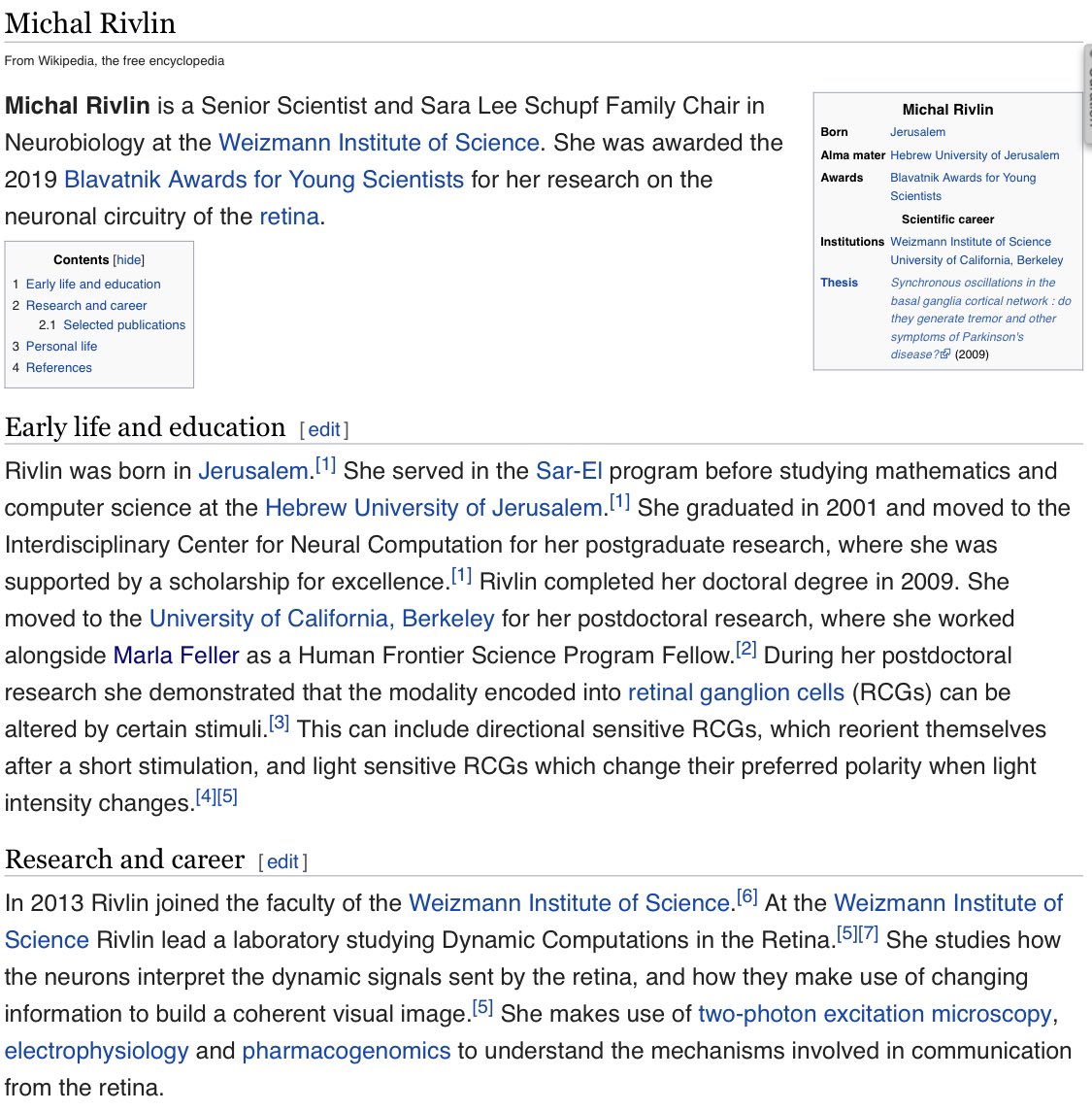 laureate of the @BlavatnikAwards. She studies the neuronal circuitry of the retina, inc. how it responds to stimuli + can diagnose neurodegenerative disease. New@wikipedia page:https://en.wikipedia.org/wiki/Michal_Rivlin …#WomenInSTEMpic.twitter.com/WaDDVynHmL