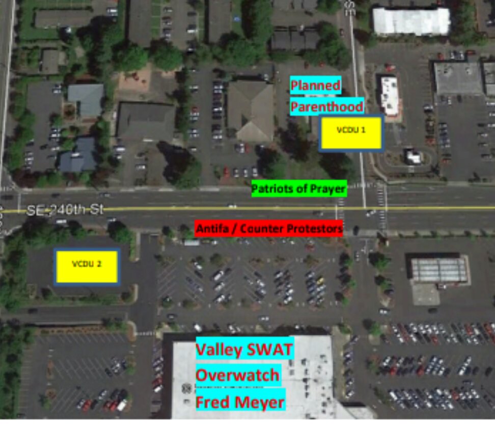 In case somehow you'd missed this memo. Gibson of course heads up Patriot Prayer, or as these police thought of them, Patriots OF Prayer. Armed Antifascists were expected so the SWAT team did a LETHAL OVERWATCH on behalf of PatRiot Prayers.pic.twitter.com/WplmxsOnex