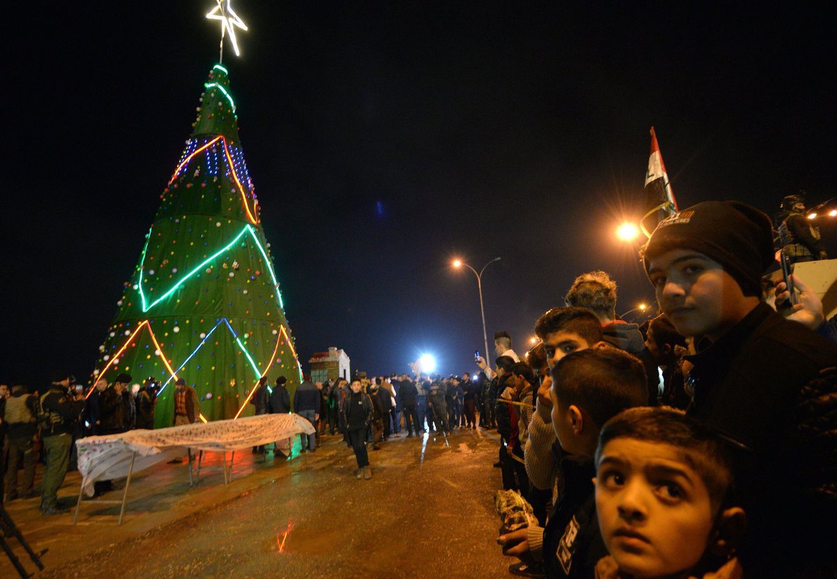 #Mosul,#Iraq, was still controlled by the brutal ISIS terror group; and Iraq’s indigenous Christian community was banned from entering the city. This is Mosul last night, celebrating New Year’s Eve with a Christmas tree.#HappyNewYear!pic.twitter.com/kn7mVIMdas