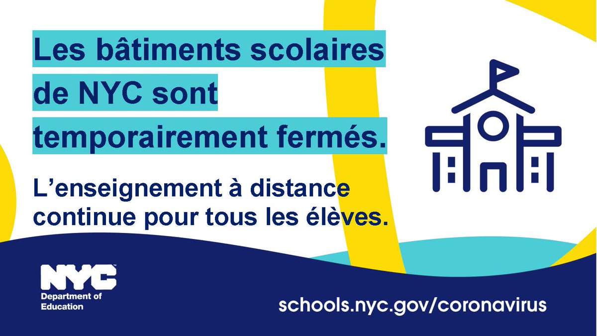 URGENT: FERMETURE dès demain de tous les bâtiments des @NYCschools pour l'apprentissage en personne jusqu'à nouvel ordre. Tous les élèves apprenant dans des bâtiments scolaires une partie de la semaine passeront à un apprentissage quotidien à distance. http://schools.nyc.gov/coronavirus pic.twitter.com/X6tDp2YWAv
