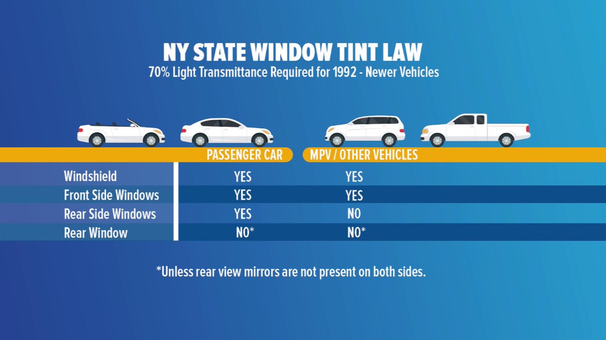 Take a look at the NYS window tinting laws as explained by