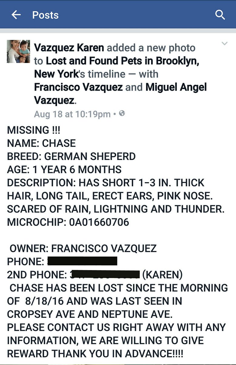 "Chase" has been reunited w/ the Vazquez family thanks to a little help from social media