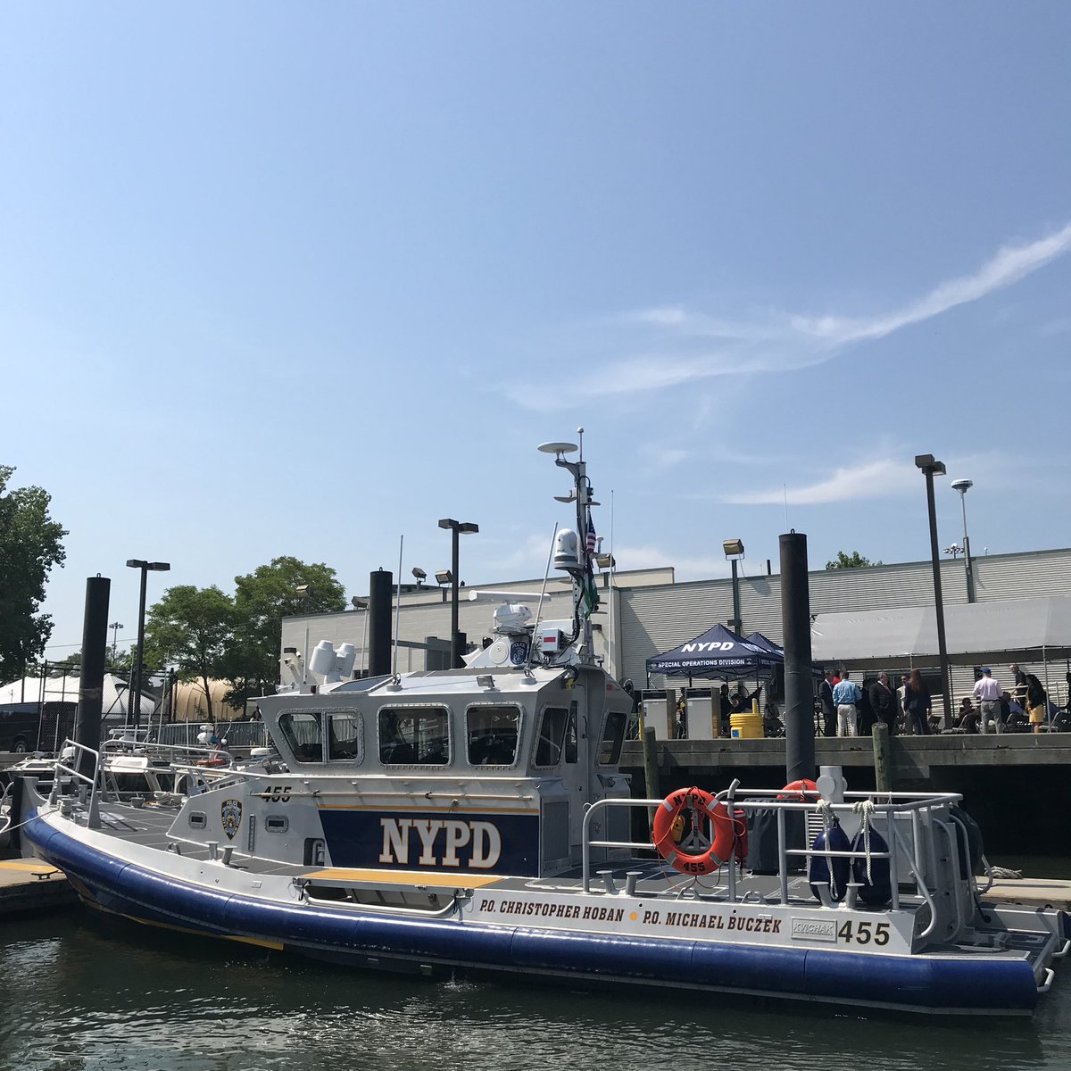 The launch named today in honor of Police Officers Hoban and Buczek will assist the @NYPDSpecialops Harbor Unit safeguard NYC coasts and hundreds of miles of waterways carrying out rescue operations, patrol duty, counterterrorism work and more. #NYPDprotectingpic.twitter.com/V4FifaZRvH