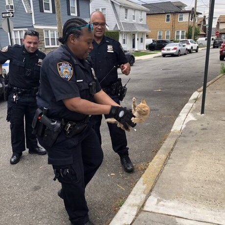 Officer isn't very good at kitten-holding.