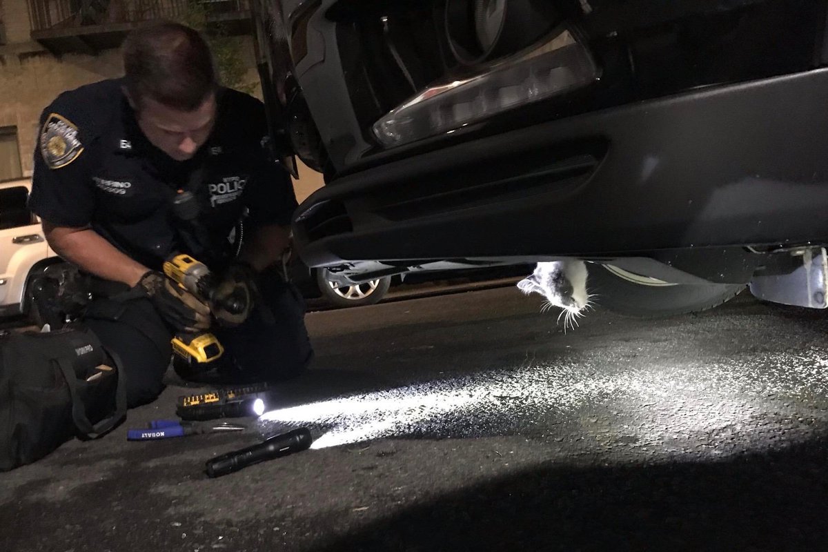 This Bronx cat wins the 2019 Hide and Seek Championship! 🐈 When Officers Verrino and Shelley from Emergency Service Truck 4 caught this little guy taking a cat nap in a car’s undercarriage, they safely freed him from the spot.pic.twitter.com/WFb2TkS21a