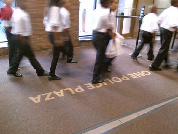 Participants in the summer Youth Police Academy stream into Police HQ for graduation. More: http://on.nyc.gov/16zVNI8 pic.twitter.com/n7cDjU4pWJ