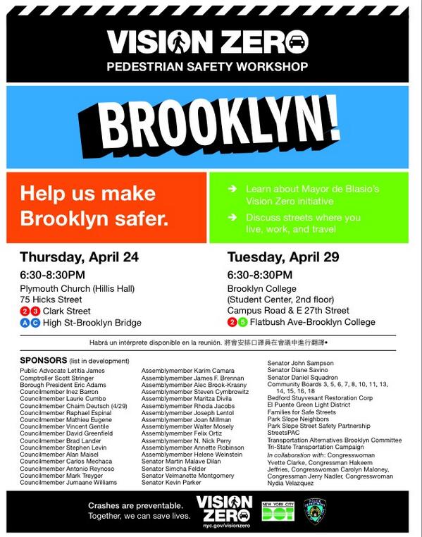 .@NYC_DOT: TONIGHT #VisionZero Pedestrian Safety Workshop in Brooklyn: http://on.nyc.gov/1kK3IIF pic.twitter.com/txV3hVBcHp