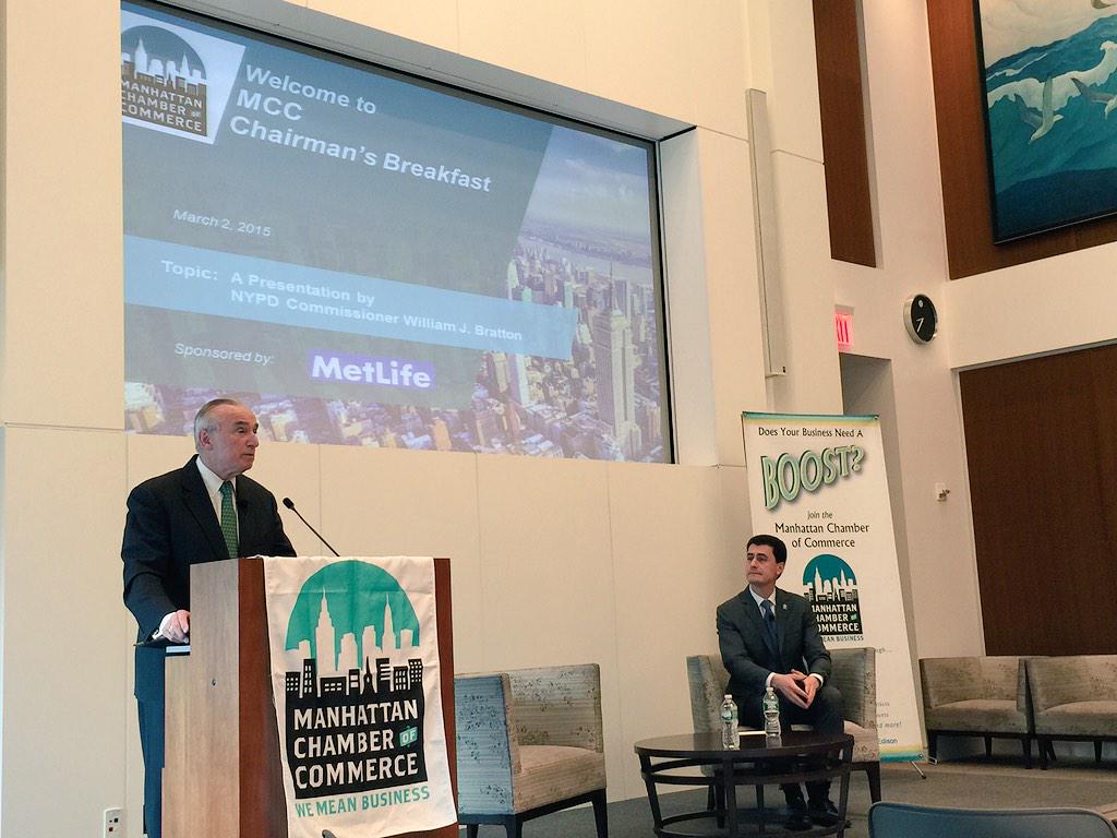 #HappeningNow: NYPD @CommissBratton speaks with members of the @ManhattanCofC regarding policing in NYC.pic.twitter.com/EPsk24nx6A