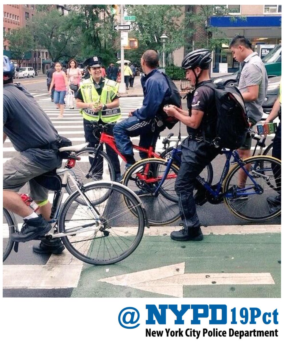 Great work by Auxiliaries promoting #BikeSafety yesterday in the very busy 1 Ave #Bike lane #VisionZero #UES #NYCpic.twitter.com/TmBHLEQVDs