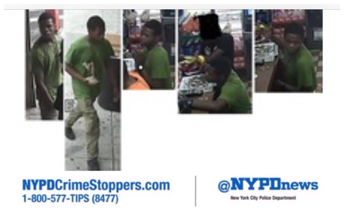 WANTED: M/B for firing a gun at a bodega at E169St/3rd Ave after being asked to leave on 7/30 8am. Call #800577TIPSpic.twitter.com/oKkgCN0vnr