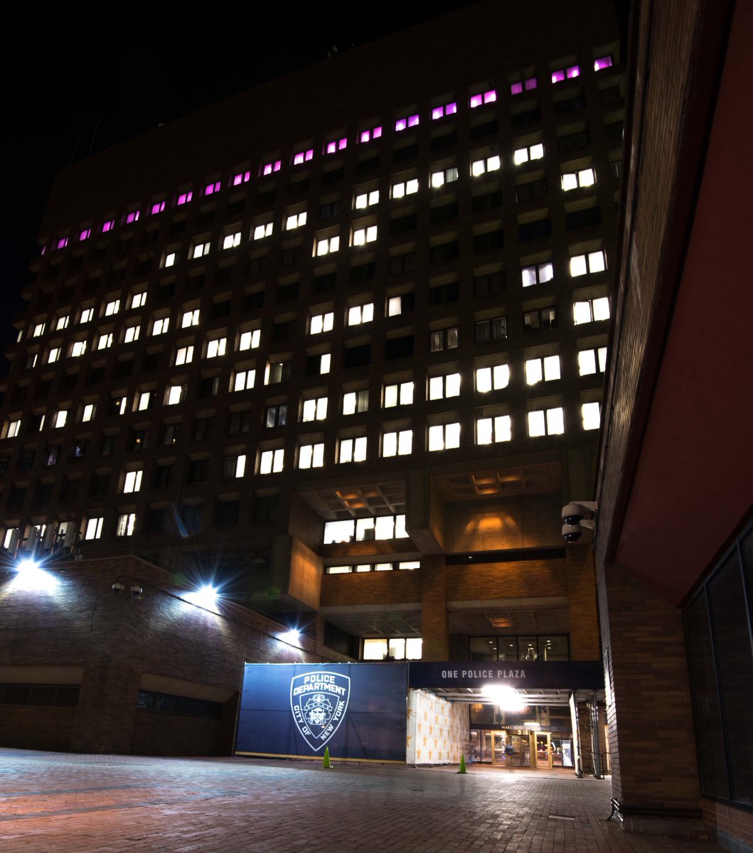 NYPD Headquarters lights up purple tonight to #ShinetheLight on Domestic Violence. More: http://ow.ly/2bvYBz pic.twitter.com/izY9S13b9D